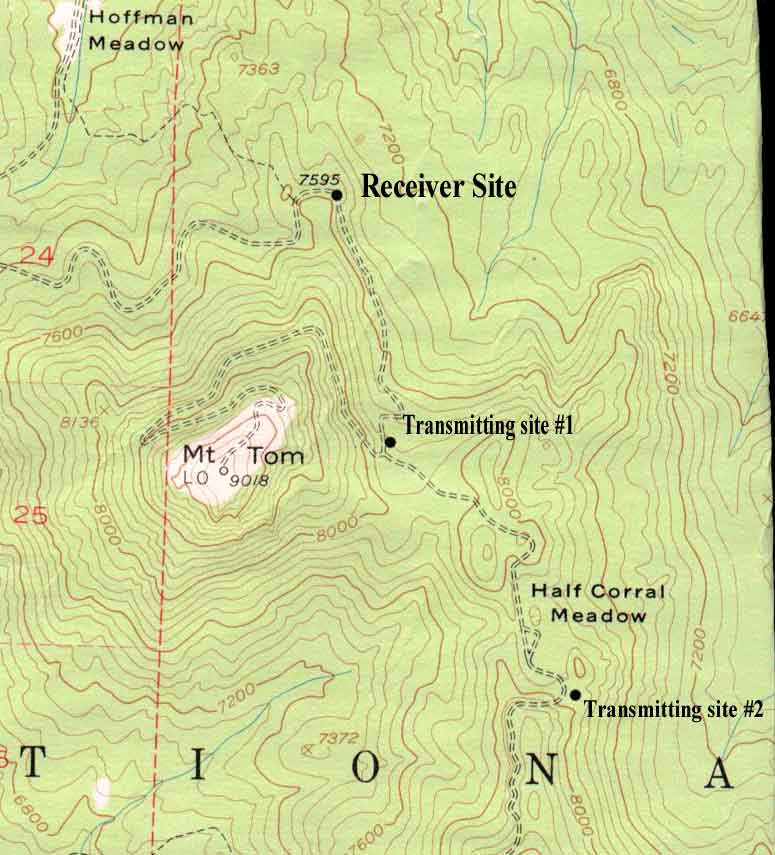 and transmitting sites are 300 ft. triangular loops of 20 gauge wire suspended about 50 feet high at the apex. The